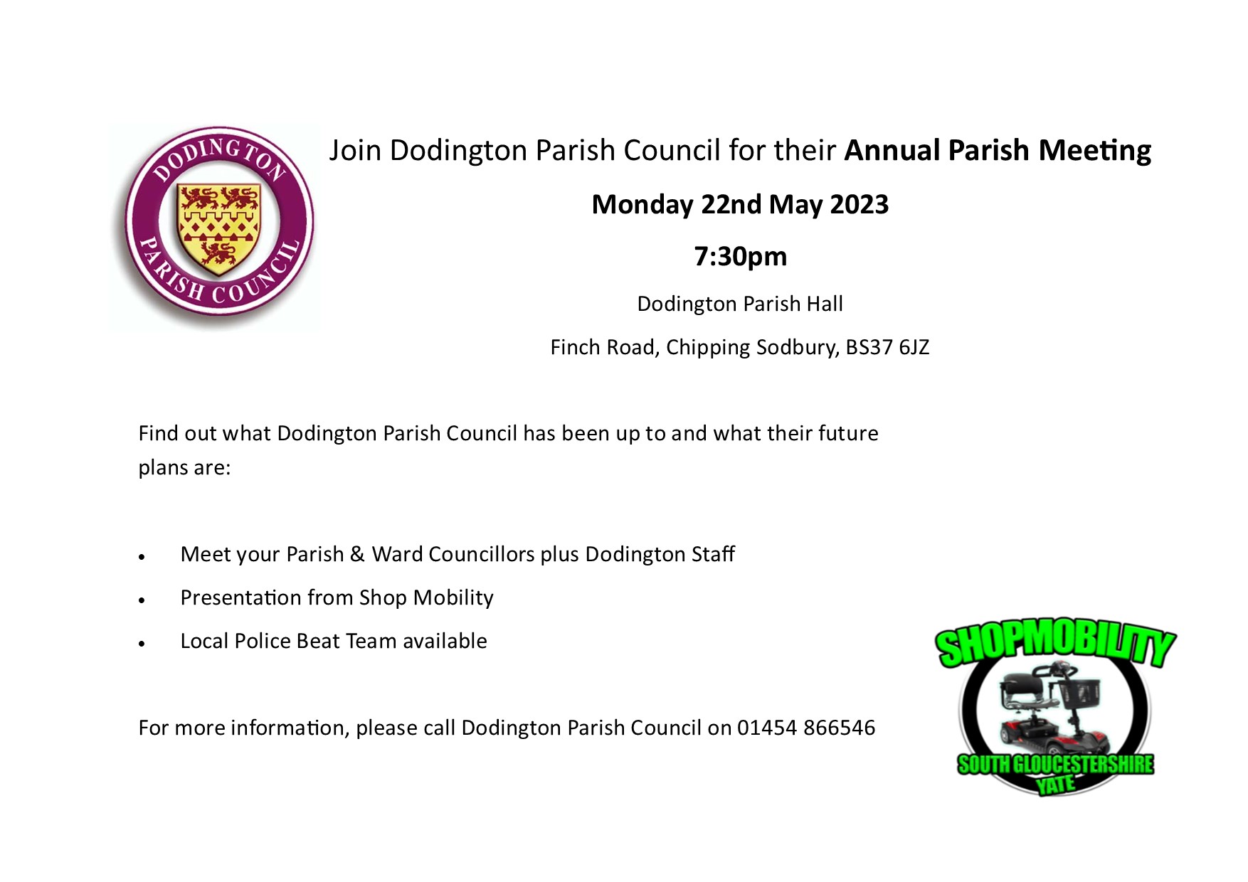 Annual Parish Meeting of Dodington PC – Monday 22 May at 7:30pm by DPC Office | Apr 12, 2023 | Meetings