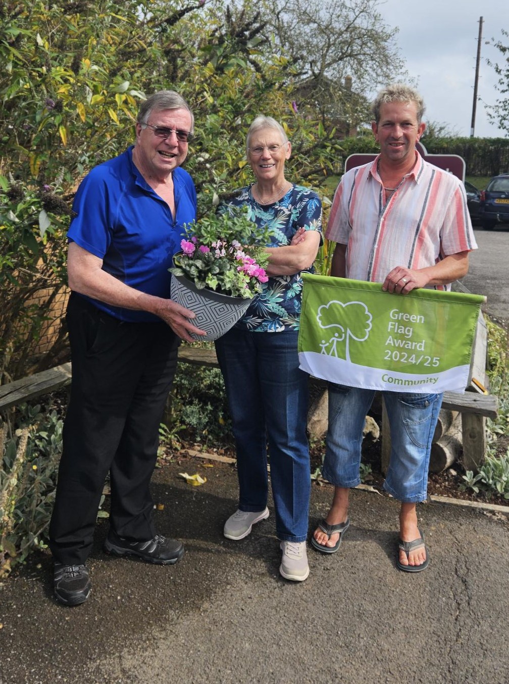 To mark the occasion, the Chair of the Parish Council, Cllr Chris Zapata, and Cllr Paul Hulbert presented Isabel with a planter for her lovely garden.